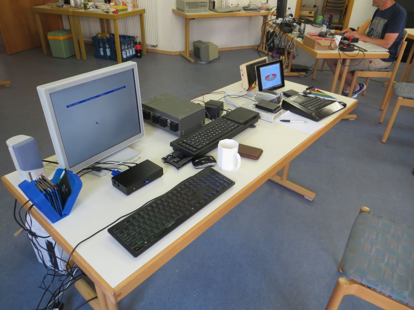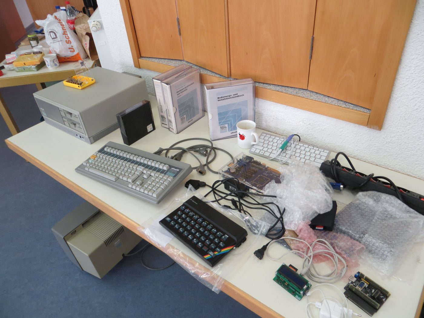 Mit von der Partie waren vom ersten Sinclair Spectrum 48K, auch der 128K, einige Eigenbauten bis hin zum Sinclair NEXT und ZX Uno alles vertreten. Dazu kam noch der MIST als „Emulator“ einiger Sinclair Rechner, der Sinclair QL und der Q68 als „Gäste“.