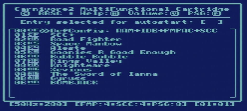 20 CF-Karte wieder in den MSX und das Carnivore 2 Boot-Menü starten