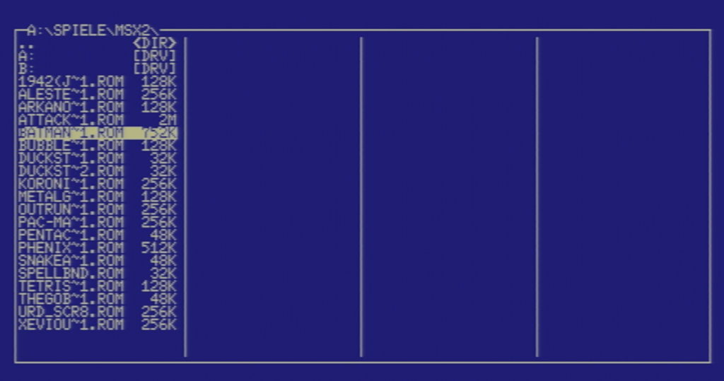 19. dazu kommen noch die Dateien C2MAN.COM und C2MAN40.COM (für MSX1) ebenfalls ins Root-Verzeichnis – zu finden auf der Carnivore-Github-Seite