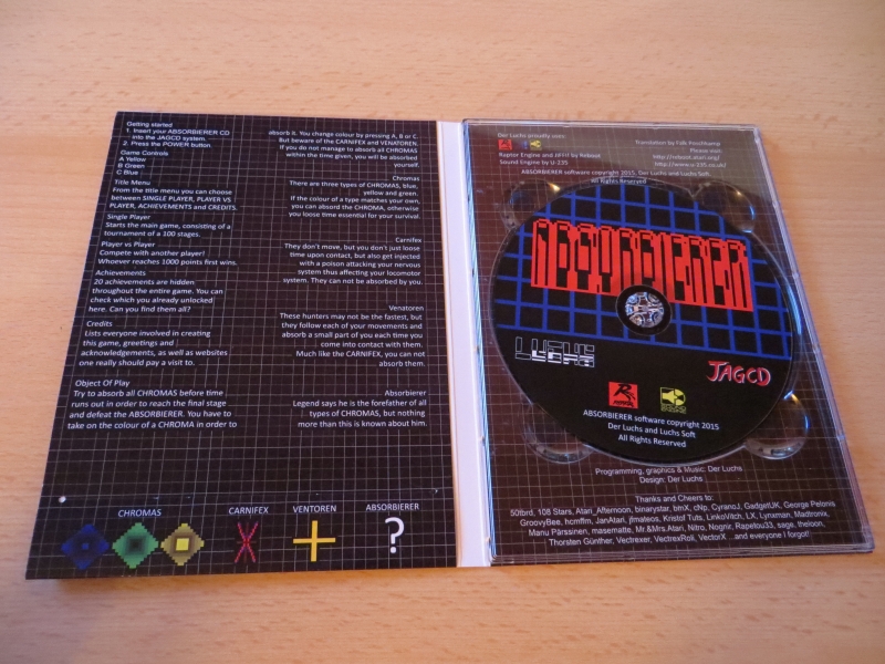 Bereits das zweite Spiel in diesem Jahr von Luchs-Soft für das Atari Jaguar CD. Wieder in begrenzter Stückzahl, wieder toll präsentiert – in der DVD-Hülle stecken das Poster, ein Aufkleber, ein Kühlschrank-Magnet und das Overlay für das Jag-Pad. Die CD ist wieder im Spieldesign bedruckt und die Box aufwendig gestaltet.