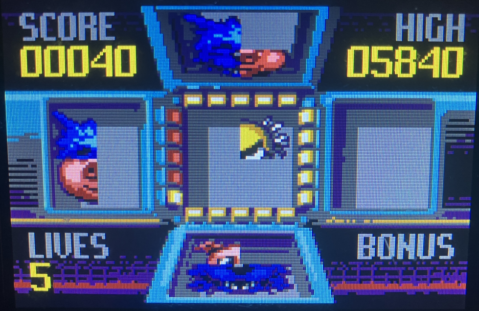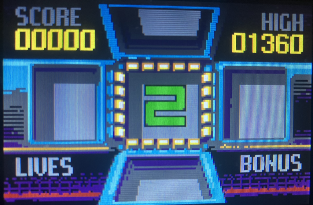 Der Bonus in der rechten untern Ecke zeigt den Multiplikator an. Ist der Spieler zu langsam und die Zeit läuft ab (oder ein Teil wird in einem bereits belegten Slot platziert), geht ein Leben verloren. Schafft es der Spieler aber das ganze Board zu leeren, gibt es 500 Punkt und ein Extra-Leben.