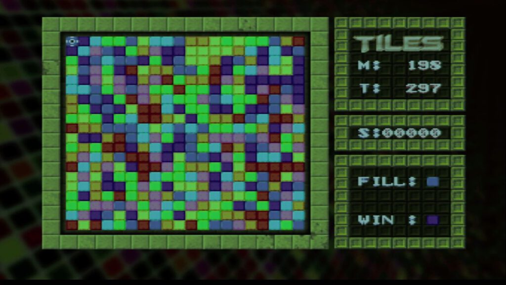 Mit dem D-Pad wird der Cursor auf dem Grid bewegt. Für die Auswahl einer Kachel zum Auffüllen wird Knopf C verwendet und mit Knopf B wird die Kachel dann zum Füllen verwendet.