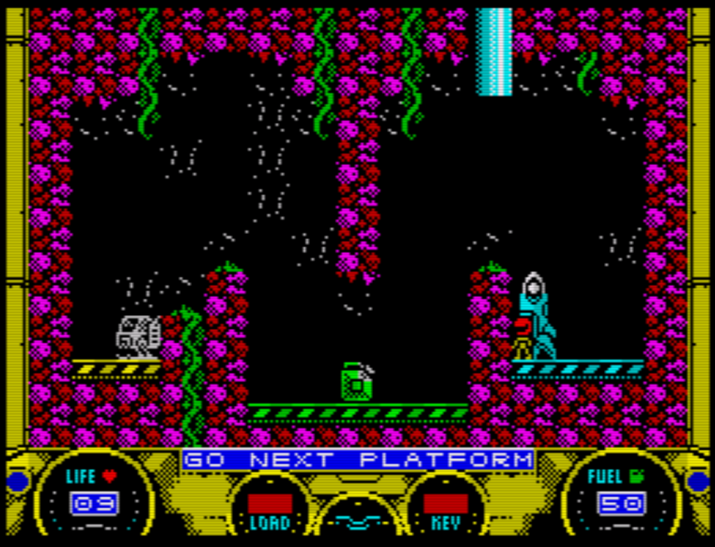 Zum Start gibt es 15 Leben, weitere können im Laufe des Spiels gesammelt werden, aber sie reichen dennoch nicht aus. Es ist nicht verwunderlich, in nur einem Level ein halbes Dutzend Leben zu verlieren, nur weil es schwer ist, sich zu orientieren, da die Bildschirme nicht gescrollt werden. Außerdem ist es nicht einfach, beim Betreten eines neuen Bildschirms sofort zu erkennen, welchen Weg man einschlagen muss, vor allem, wenn man ein Schiff hat, das aufgrund der Schwerkraft oder Trägheit nie anhält. Daher ist es nicht nur ratsam, sondern sogar obligatorisch, auf allen Sicherheitsplattformen zu landen, um den sichersten Weg nach vorne zu planen.