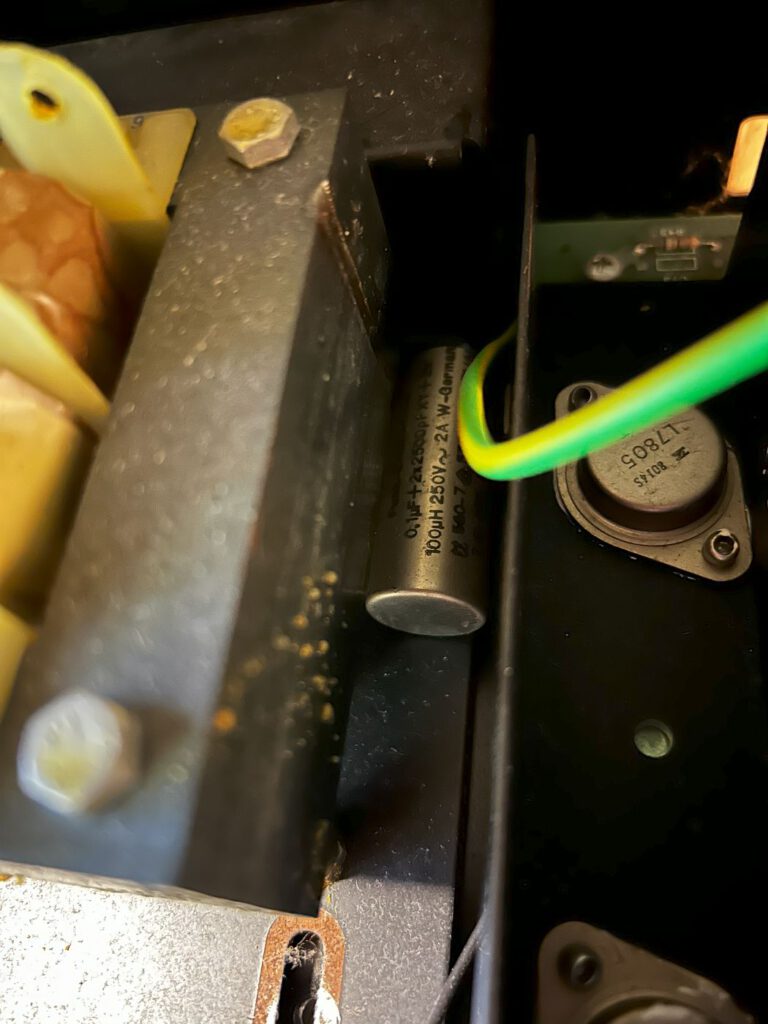 Zuerst stellte sich heraus, dass die Sicherung durchgebrannt war. Es wurde vermutet, dass der Entstörfilter defekt sei. Diese Filter wurden früher eingebaut, um beispielsweise Radios vor Störungen zu schützen. Heutzutage ist dies nicht mehr notwendig, daher können sie überbrückt werden. Bevor ich jedoch eine neue Sicherung einsetzte, stellte ich fest, dass an den Messpunkten des Trafos keine Spannung vorhanden war.