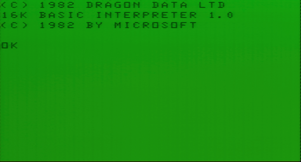 Nach dem Einlegen der Kassette kann schon mal Play gedrückt werden, da die Kassette erst aktiviert wird, wenn am Dragon der Befehl zum Laden – CLOAD „“ – eingegeben wurde. Danach wird das Band gestartet und es erscheint oben links das Zeichen S – wird ein Programm gefunden, ändert sich die Anzeige entsprechend.