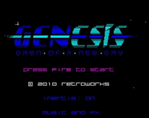 ![]() | Genesis: Dawn of a new Day Autor: Retroworks Jahr: 2010 Download: WOS Archiv Rechner: Sinclair ZX Spectrum 128K |