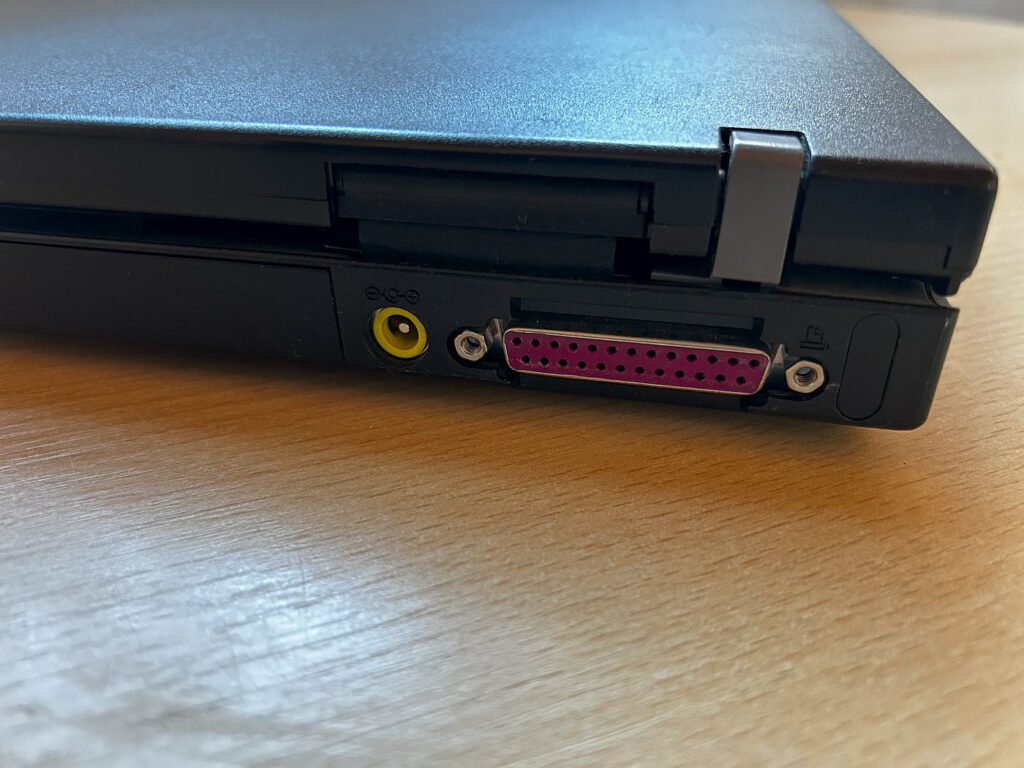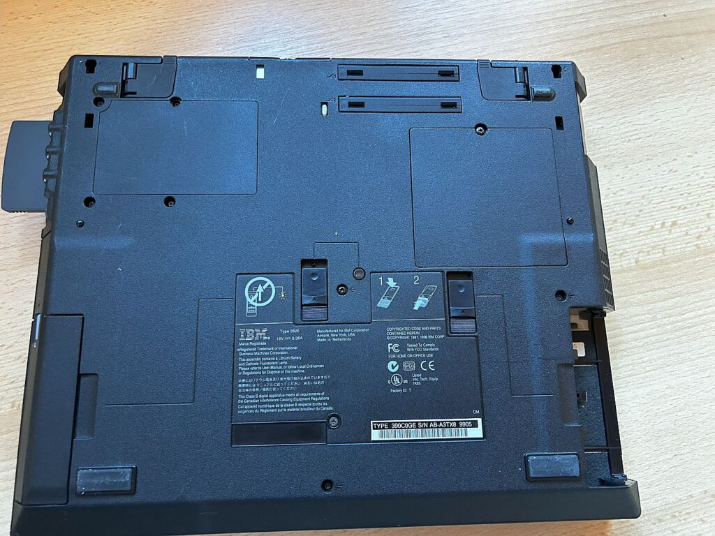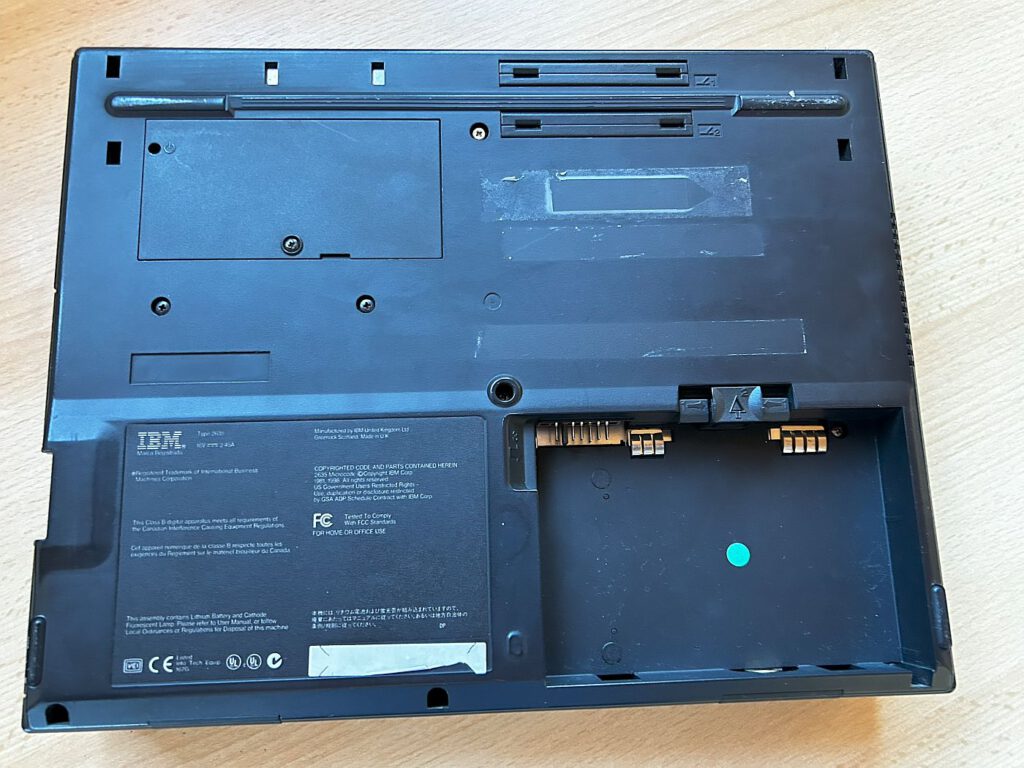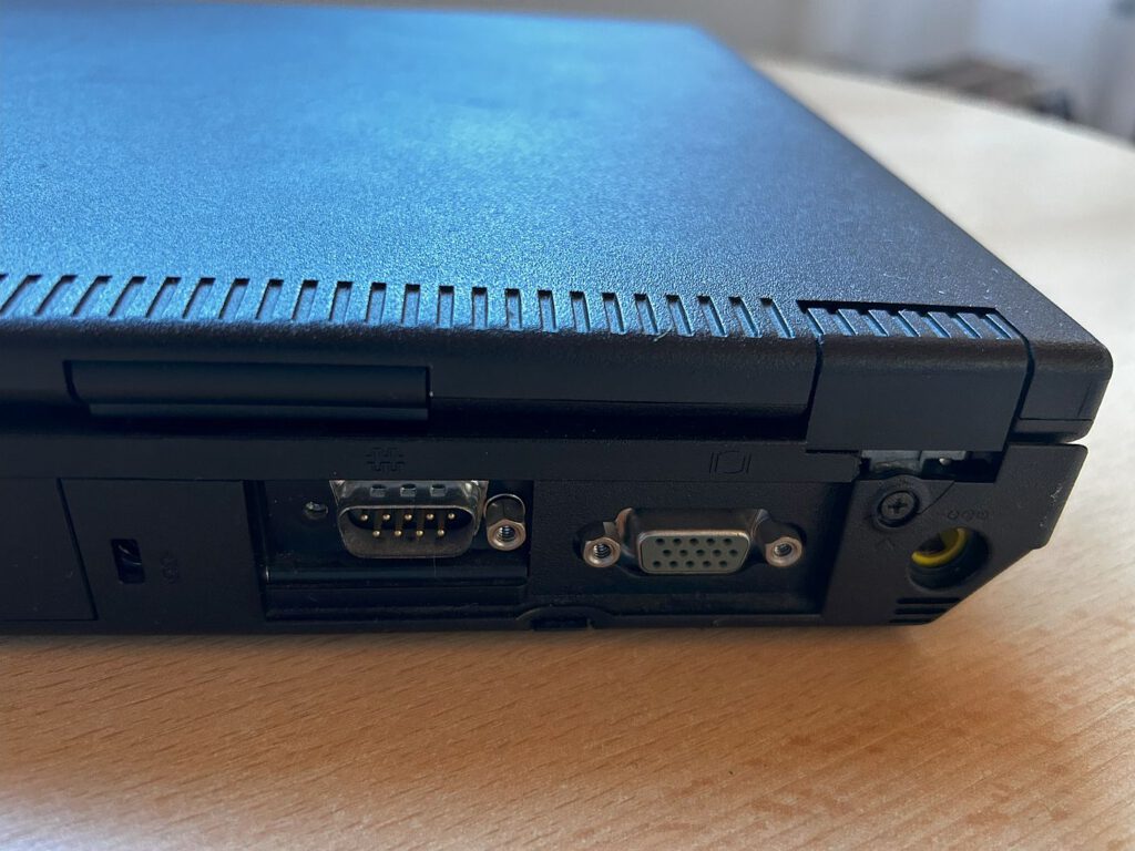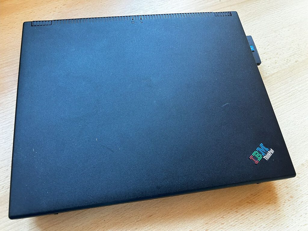 In meiner Sammlung befindet sich ein Thinkpad mit Windows NT 4.0, installiert auf einer 4-GB-Festplatte. Beeindruckend ist die Vielzahl an Anschlüssen: Auf der linken Seite gibt es Kopfhörer-, Mikrofonanschluss, Lautstärkeregler und zwei PCMCIA-Slots. Auf der rechten Seite sind das 3,5-Zoll-Diskettenlaufwerk und das CD-ROM-Laufwerk angebracht. An der Rückseite finden sich Anschlüsse für Bildschirm, Drucker, serielle Schnittstelle, USB und serielle Maus. Wie bei den meisten Geräten dieser Ära war auch hier ein Austausch der BIOS-Batterie notwendig.