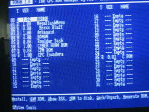 Das Bootmenü zeigt nur ROMs in ROM-Nummern über der ROM-Nummer des Menüs an, damit du sortieren kannst. Solche ROMs wie z.b. Maxam willst du sicher nicht im Menü haben. Sinnvoll wäre z. B. in Slot 1 Roman, in Slot 2 MegaFlash Menü und dahinter die Spiele und Anwendungen. Keine Angst, ROM 7, also AMSDOS wird nicht mit angezeigt. Das Menü verlassen kannst du übrigens entweder mittels Reset oder 2xESC.