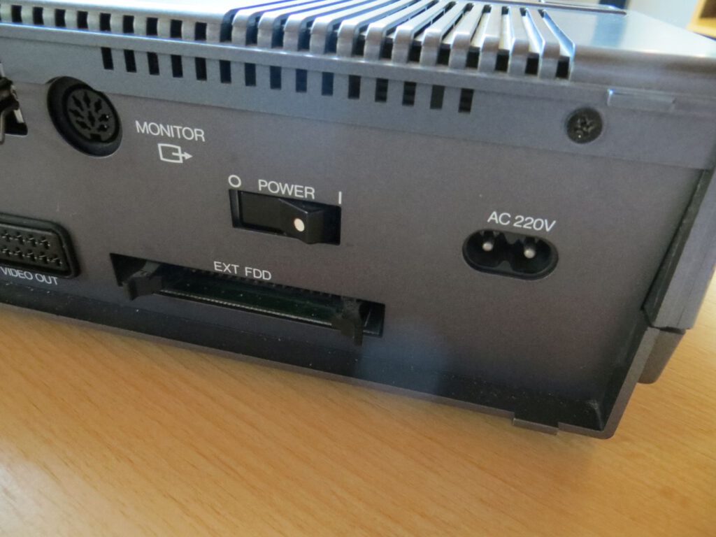 Leider steht oben rechts auf dem Gehäuse 256 kB RAM, was etwas irreführend ist, da der Rechner nur 128 kB RAM hat, die anderen 128 kB stehen als Videospeicher zur Verfügung.
