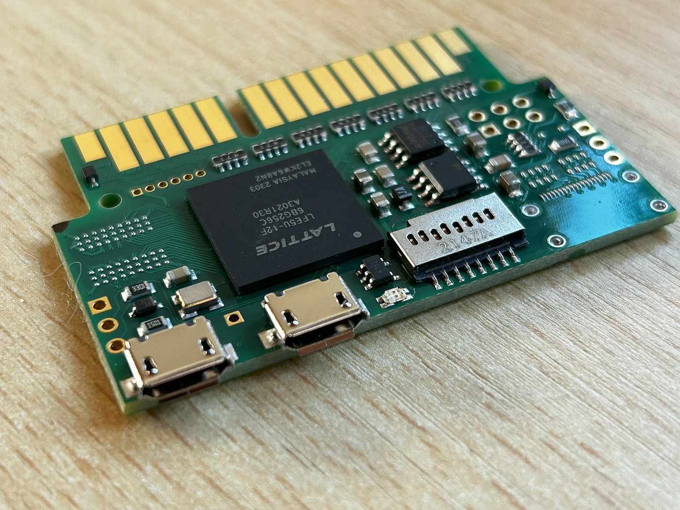 Das wirklich sehr kleine Interface (53 × 35 mm) – bietet einen Slot für eine Mikro-SD-Karte sowie zwei Mini-USB-Anschlüsse. Übrigens QIMSI steht für QL Intelligent Mouse and Storage Interface!