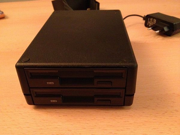 Nachdem ich vor einigen Jahren einen Sinclair QL mit zwei Diskinterfaces ersteigert hatte, habe ich mir vorgenommen diese auch zu nutzen. Durch Zufall bin ich dann auf einen Spezialisten in Belgien gestoßen (Danke Ben!), der noch Diskettenlaufwerke für diese Computer bastelt. Zusammen mit Rich Mellor haben wir dann herausgefunden, welches Laufwerk benötigt wird. Das gelieferte Doppeldiskettenlaufwek macht einen sehr professionellen Eindruck und wird zusammen mit dem passenden Floppykabel und einem Netzteil geliefert. Die Laufwerke können DD-Disketten mit 720 kB beschreiben. Bei evtl. vorhandenen HD-Disketten kann zur Verwendung vorher das Diskettenloch mit einem Klebestreifen zugeklebt werden, dann können auch diese verwendet werden.
