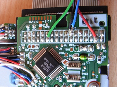 Dazu muss lediglich ein Kabel an die PINs 12 und 21 (Masse) gelötet und mit einem Schalter verbunden werden. Mit diesem Schalter kann man das externe Laufwerk zu Laufwerk A machen und von diesem Laufwerk auch booten!