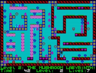 Du bist dabei das „Deadly Labyrinth of Lord Xyrx“ zu betreten. Du musst nicht alle Gegenstände essen aber du musste in jedem Level fünf blaue Schlüssel sammeln um alle Türen in die nächste Kammer zu öffnen. Achtung: Vermeide die Monster 🙂 Sie töten dich sofort. Am Schluß erwartet die die düstere Burg von Lord Xyrx. Nimm‘ dich in Acht!