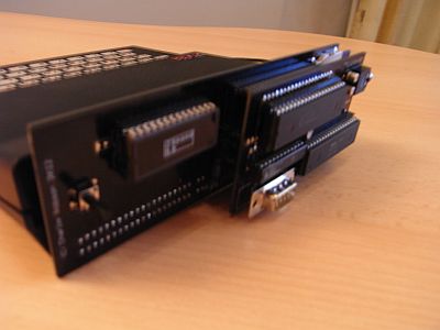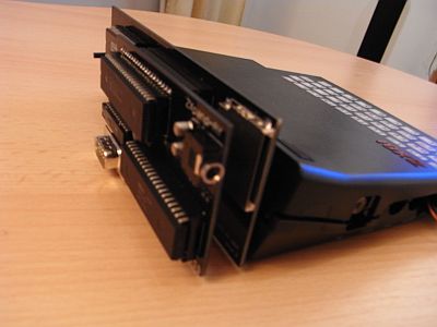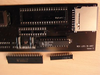Um das Modul mit dem ZXpand Interface zu verbinden, muss der Hauptprozessor vorsichtig entfernt werden (der große Chip neben dem SD-Karten-Leser) – dieser wird wieder benötigt. Ebenso muss der GAL Chip direkt unterhalb dieses Prozessors entfernt werden (wird nicht mehr benötigt).