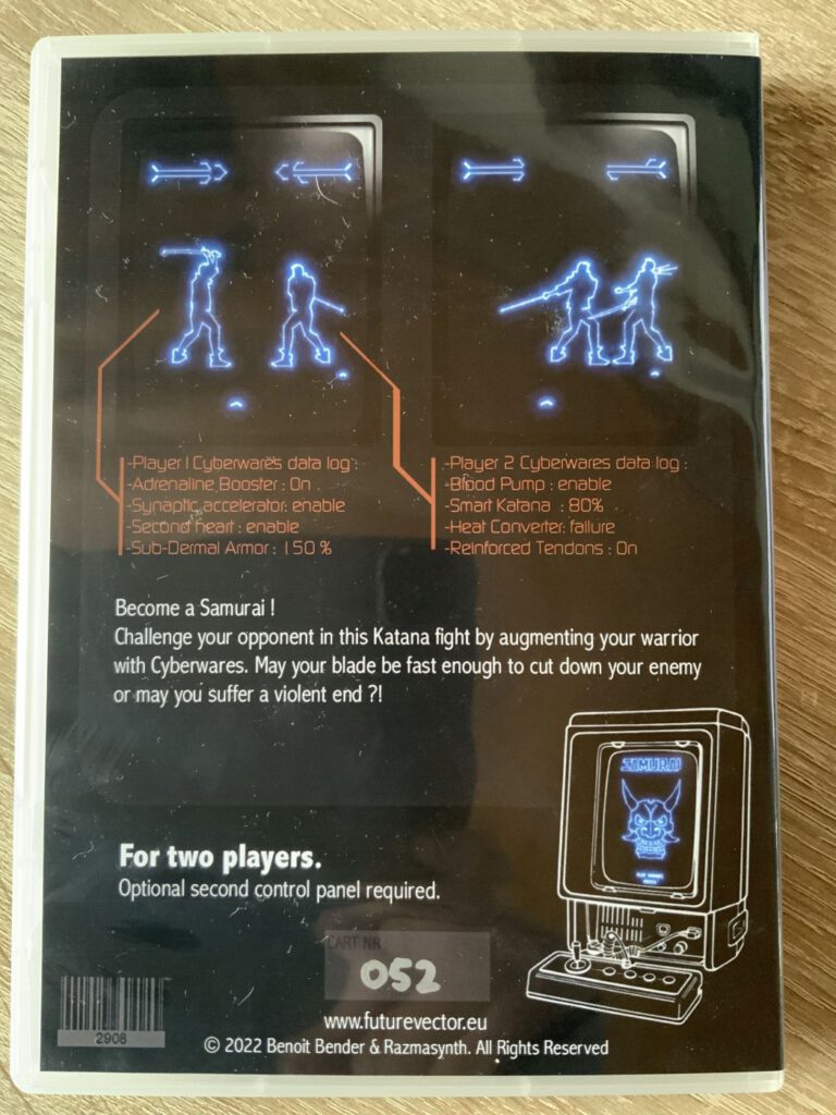 Samurai ist ein Spiel von Benoit Bender aka Future Vector, der 2019 sein erstes Vectrex-Spiel WirEout veröffentlichte. In diesem Fall wagte er einen Ausflug in die Welt der Duelle und daher kann es nur zu zweit gespielt werden.
