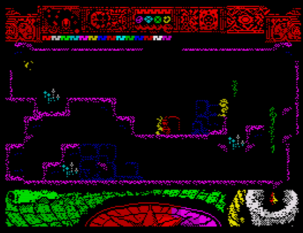 Die Grafik und die Szenerie sind auf dem üblichen Retroworks-Niveau, obwohl so viel Farbe zu einem gewissen Attribut-Clash führt, was aber Sinclair-Fans nicht stören wird. Dazu gibt es eine sehr stimmungsvolle Melodie, die die perfekte Atmosphäre für ein Spiel wie dieses schafft.