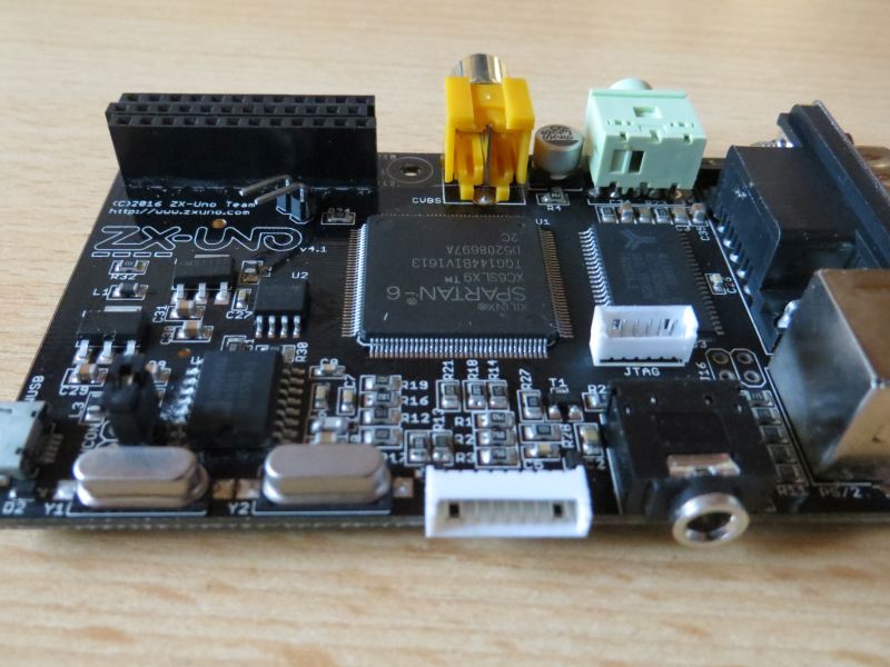 Der ZX-Uno ist ein kleines Board, auf dem mehrere unterschiedliche Rechner durch sogenannte Cores implementiert werden können. Dies übernimmt der Xilinx Spartan-6 Prozessor. Im Speicher können bis zu 9 Cores verwaltet werden (in der aktuellen Version sind das wesentlich mehr). Dies ist auch ein Unterschied zu anderen FPGA-Rechnern, wie z. B. dem Mist/MisTer, bei denen alle Cores immer von der SD-Karte geladen werden.