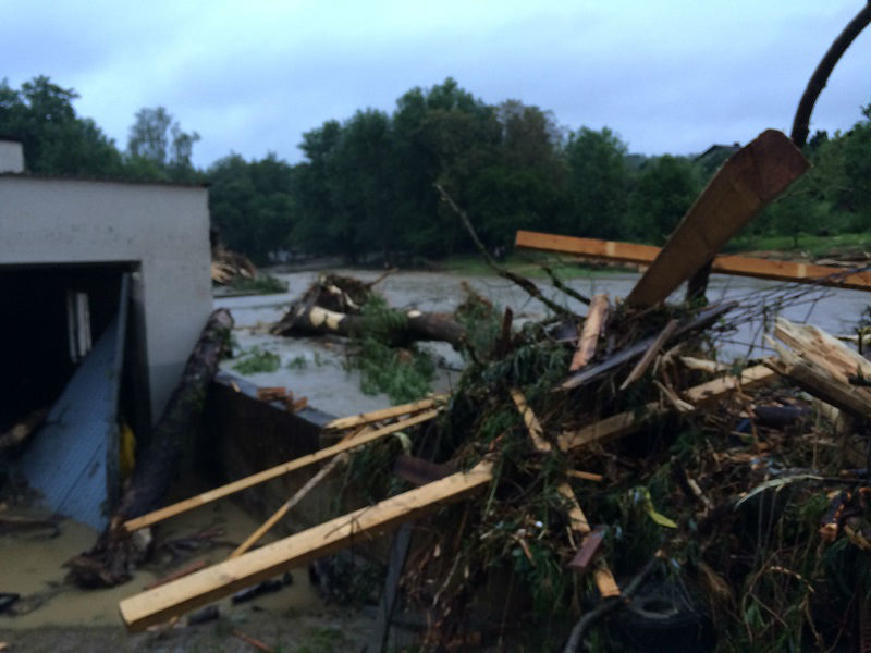 Am 01.06.2016 wurde Simbach von einem Jahrtausend-Hochwasser getroffen. Dabei hat sich der sonst friedliche Simbach in eine alles verschlingende Wasserwalze verwandelt. Vorher fielen in Simbach und im Hinterland ca. 150 Liter Regen pro Quadratmeter in kürzester Zeit – das Wasser kam aus fünf Bächen in den Simbach, der sich außerhalb an einer Straße staute – als diese Straße dann nachgab, ergossen sich die braunen Fluten über ein Sägewerk und bahnten sich dann ihren Weg durch Simbach. Dabei wurde alles verschlungen was im Weg stand.