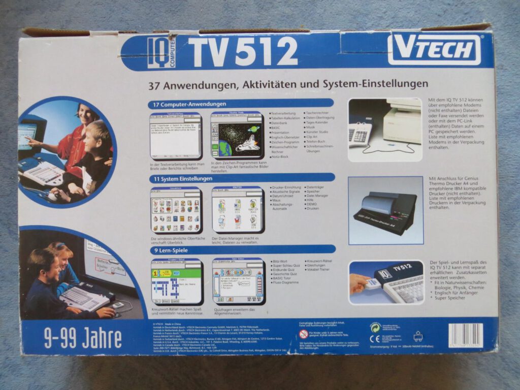 Der Zufall macht es möglich – beim Stöbern bin ich über den VTech IQ TV 512 gestolpert. Ein wirklich seltsames System aus dem Jahr 1998. VTech ist ein Computerunternehmen das auch heute noch schnurlose Telefone, einfache Computersysteme und elektronisches Lernspielzeug für Kinder herstellt. Es gibt zwei Modelle des Geräts, die sich nur durch die Größe des Hauptspeichers (128 bzw. 512 kB) unterscheiden. Als Prozessor wurde der in einen Customchip integrierte Motorola MC68000 mit 14 MHz eingesetzt. Der Rechner ist auch in England, Frankreich und den USA mit unterschiedlichen Namen erschienen.