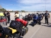 Zurück am Fährhafen reihten wir uns bei den anderen Bikes ein und konnten bald unsere Bording-Karten für die Fähre in Empfang nehmen und die Kontrolle der Polizei passieren. Das Verladen ging auch ohne Probleme – uns wurden Stellplätze zugewiesen, wir erhielten Spanngurte und Filze um den Sitz zu schonen.
