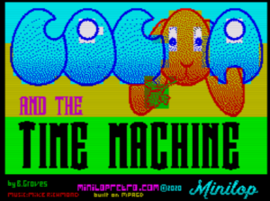Bruce Groves, der Entwickler von Cocoa and the Time Machine, zeigte den Speccy-Fans regelmäßig den Stand der Entwicklung seines Plattformers per Twitter. Das Spiel gibt es auch als 128 KB-Version, die AY-Musik bietet. Eine physische Version soll bei Bitmapsoft erscheinen. Soweit bekannt, ist dies Bruce Groves‘ erstes richtiges Werk für den Spectrum – der Rest waren einige Lernprogramme, ein Textadventure, als er 14 war, und eine Basic-Version von Track and Field.