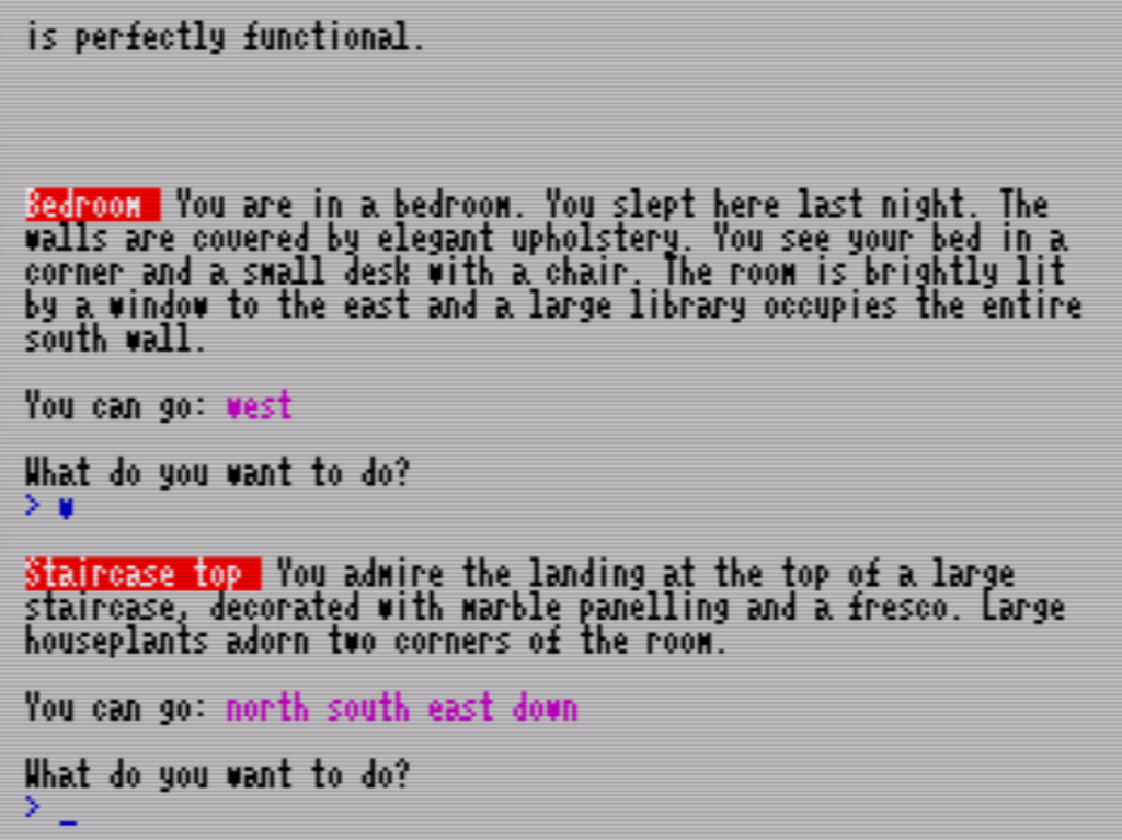 Das Spiel besteht aus vier Abschnitten und füllt diese mit großartigen Texten, die allein schon ein Buch füllen würden. Wie in den anderen Spielen des Autors kann der jeweils nächste Abschnitt nur erreicht werden, wenn der vorherige abgeschlossen wurde.