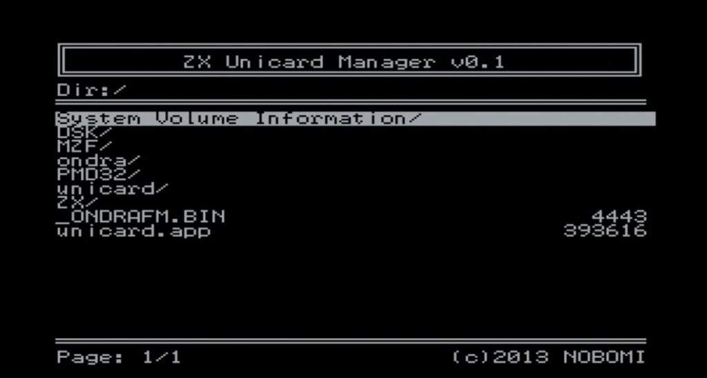Die SD-Karten-Verwaltung erfolgt über den Unicard Manager. Hier können MZF und MZT-Programme gestartet sowie Disketten-, Quick-Disk- und RAM-Disks verwaltet werden.