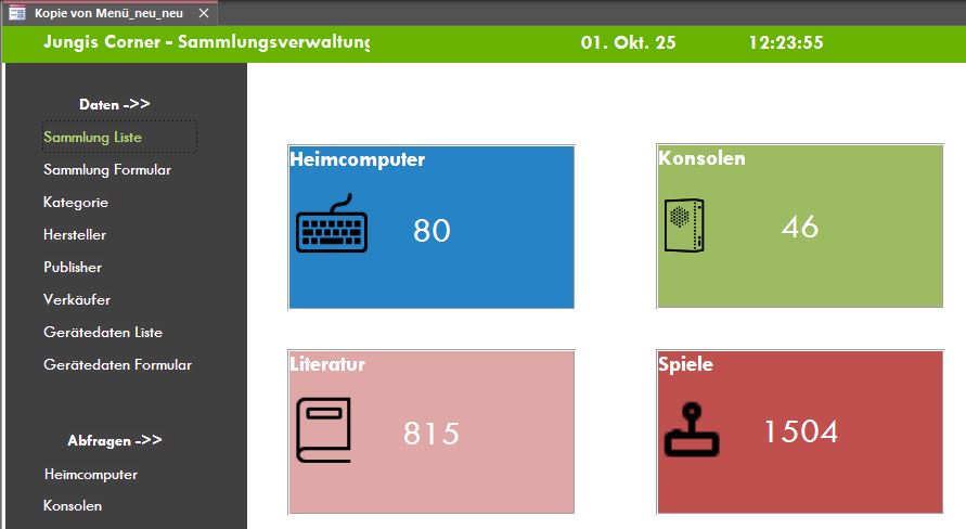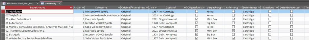 Zu Beginn des Jahres 2022 habe ich beschrieben, wie ich meine Sammlung mit Microsoft Access verwalte. Nach einer Phase der Zufriedenheit führten neue Anforderungen dazu, dass ich im Herbst 2023 eine größere Überarbeitung angestoßen habe. Ich legte eine fortlaufend gepflegte Wunschliste an und führte parallel einen Changelog über alle Änderungen. Die für 2023 geplanten Ideen wurden komplett umgesetzt – inklusive eines umfangreichen Start-Navigationsmenüs.