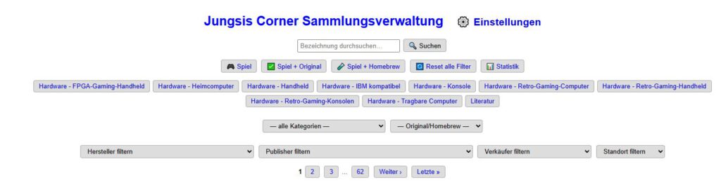 – Vordefinierte Schnellfilter auf der Startseite (z. B. alle Spiele, alle Heimcomputer)